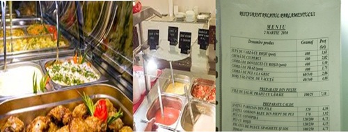 Prețurile încep de la 1,91 lei pentru o salată de varză albă și varză albă, iar cea mai scumpă este salata de pui cu sos remulade. Costă 5,39 lei porția. Pentru garnituri, aleșii nu plătesc mai mult de 5 lei.
