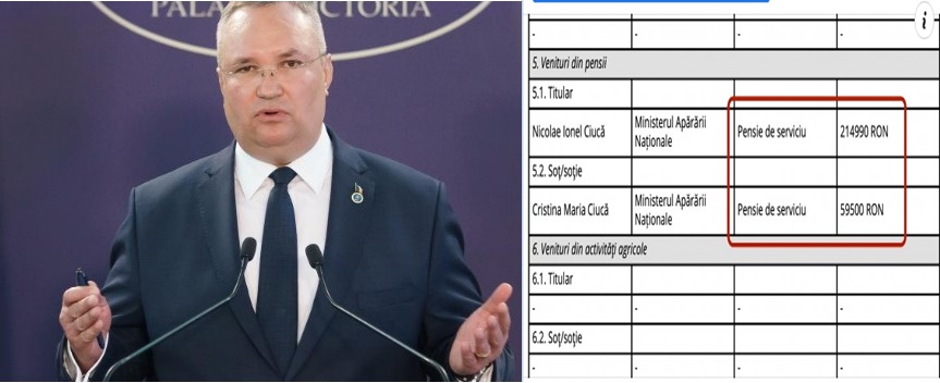 Astfel, potrivit declarației de avere, Nicolae Ciucă a încasat anul trecut 215.880 de lei pensie de serviciu, adică aproape 18.000 de lei lunar.